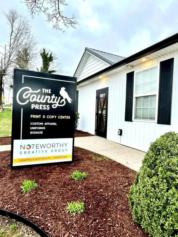 Thank you to Noteworthy Creative Group for the wonderful design and for making the perfect adjustments, and to The County Press for making our sign! This group of people is also a small local business. They do great work and listen and create exactly what you are looking for!