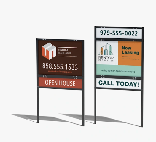 Real estate sign frames provide a durable, professional way to showcase property listings and attract potential buyers. Built to withstand outdoor conditions, these frames support a variety of sign materials and sizes, making them ideal for residential, commercial, and land listings alike. Their sturdy construction ensures signs remain upright and visible, while their clean, polished appearance enhances brand credibility for realtors. With easy installation and long-lasting performance, real estate sign frames help listings stand out and capture attention in any market.